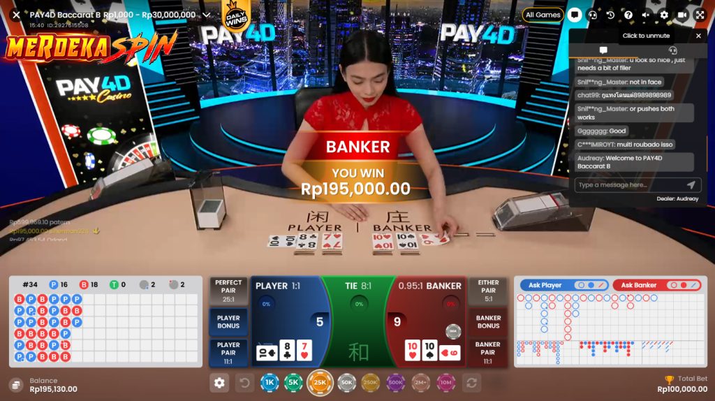 - Player Pair: Jika Anda menebak Player mendapatkan Pair dan benar, maka Anda akan mendapat 11x jumlah taruhan.